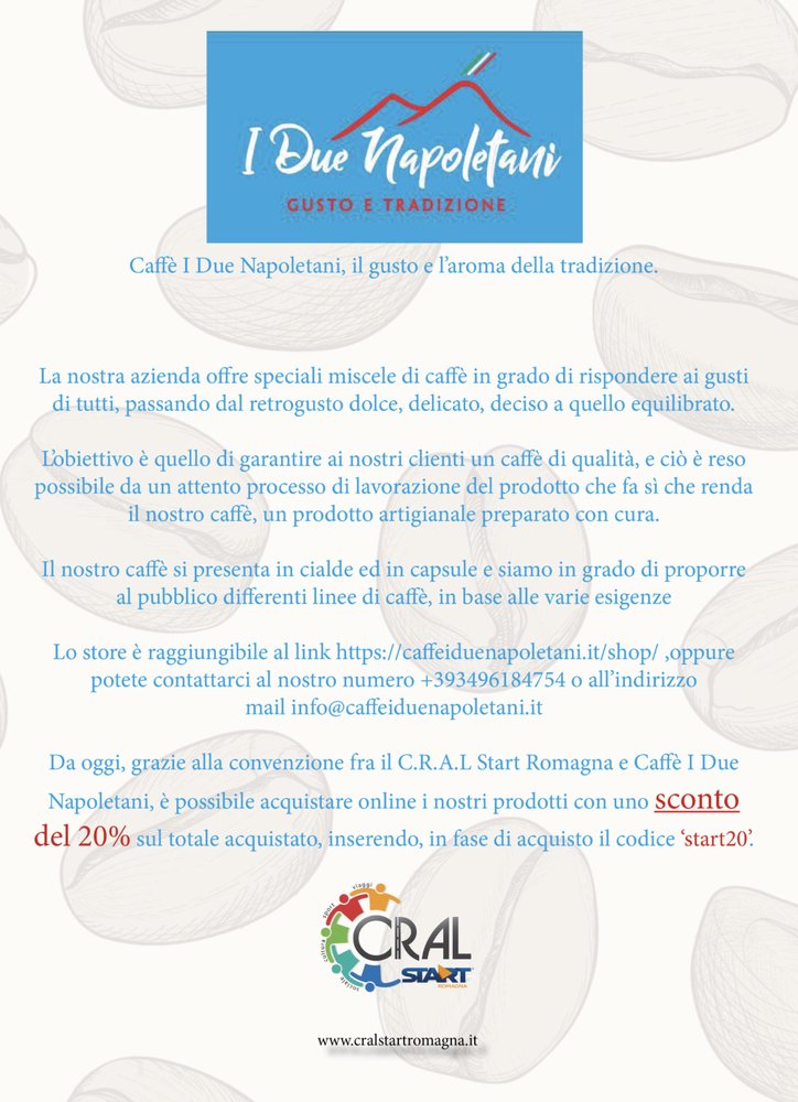 Sconto del 20% su totale acquisto sul sito www.caffeiduenapoletani.it